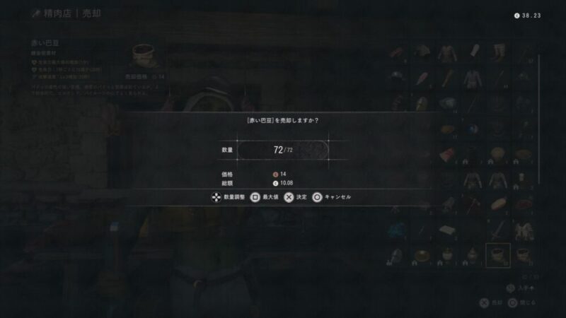 - 赤い巴豆は銅貨14で売却できる